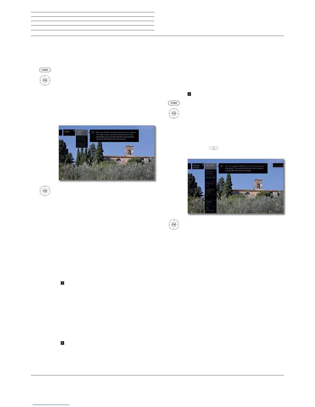 If HbbTV mode – on has been selected, you can