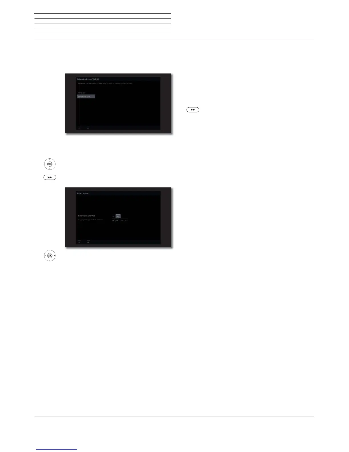 Setting options for DVB-C reception.