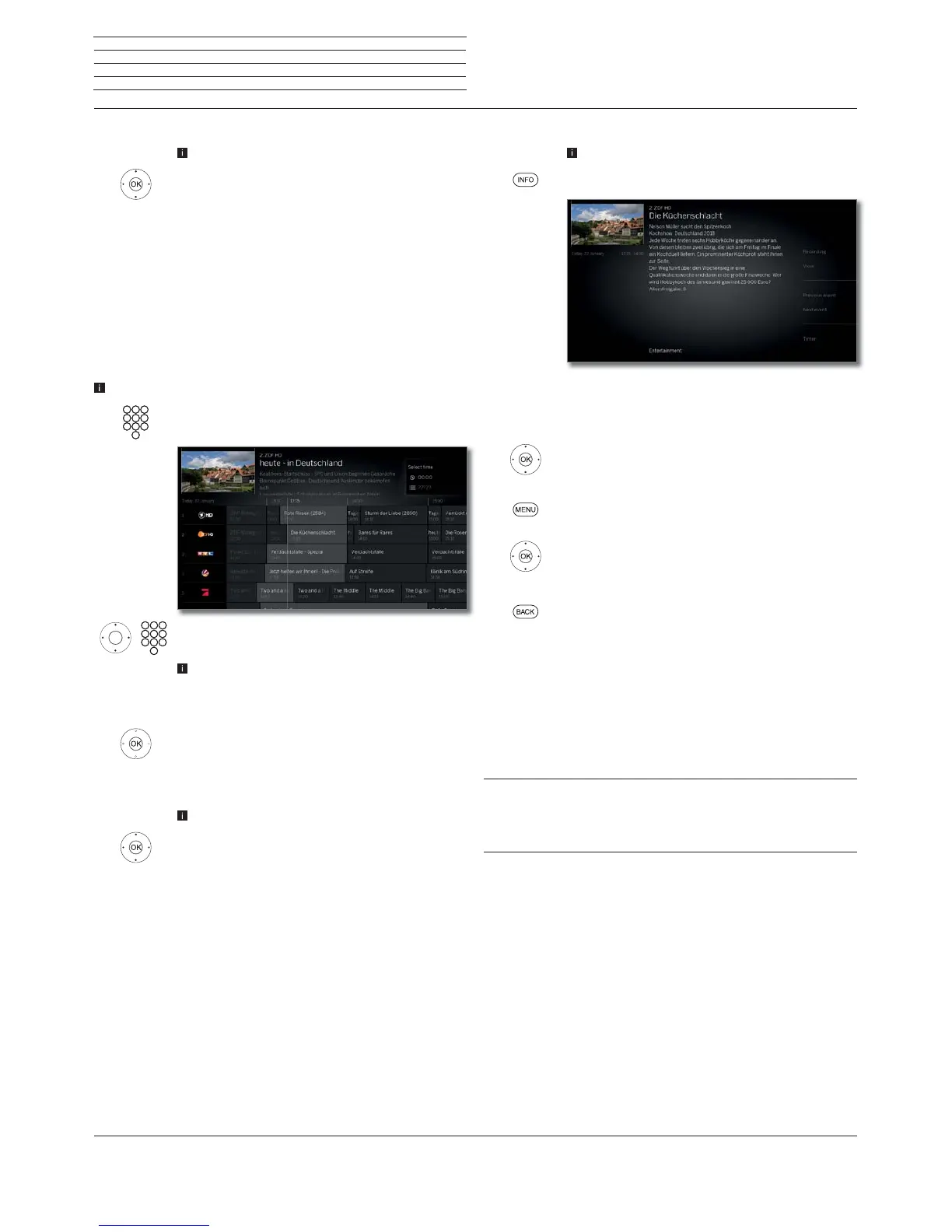 BACK: Leave detailed information and go back to EPG.