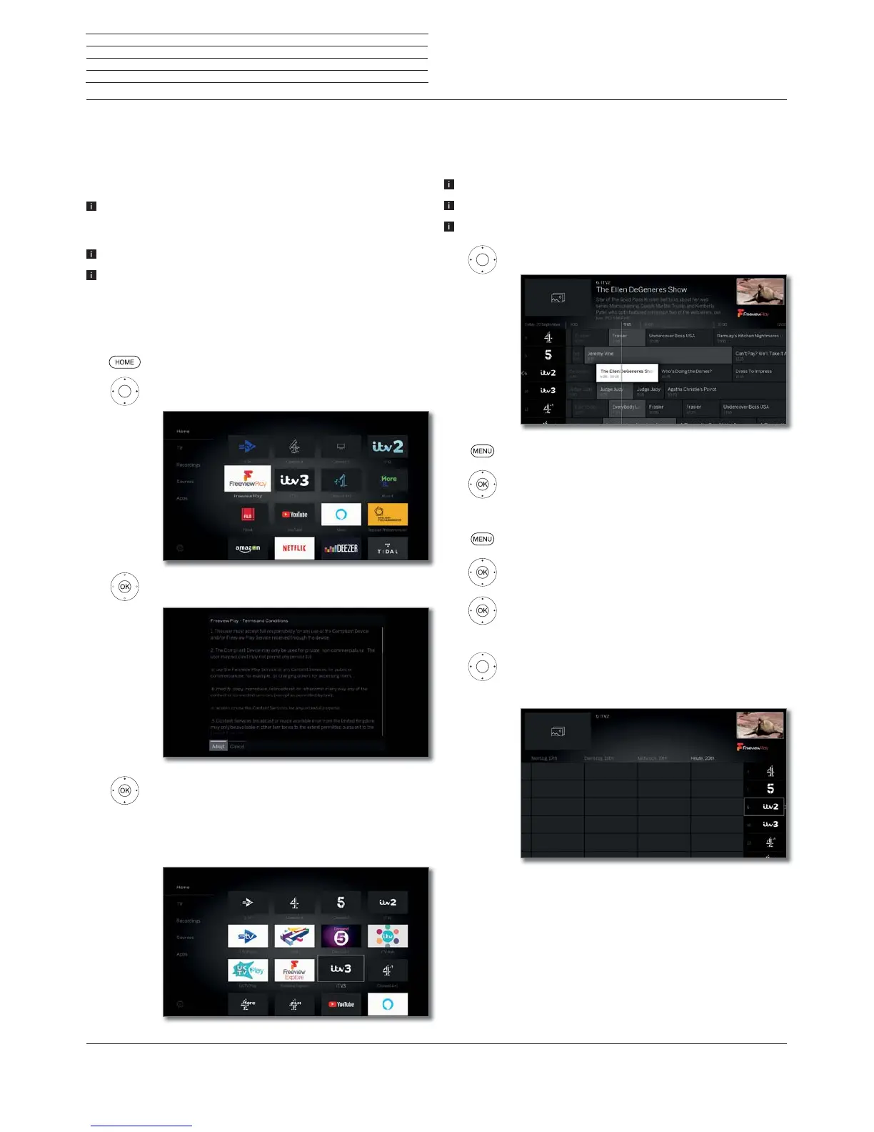 libraries of several TV channels. The tile Freeview Explore now appears
