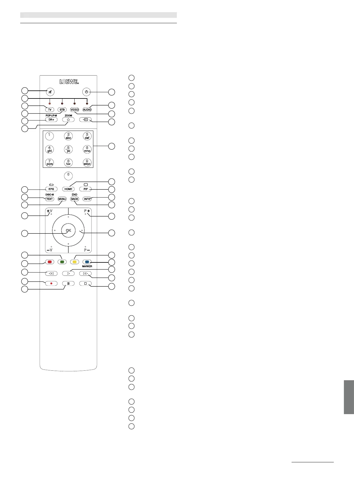 В зависимости от применения (ТВ / видео / аудио / фото / приложения) и функции (например, DR +, EPG, PIP, телетекст, HbbTV и т. Д.) Назначение кнопок может
