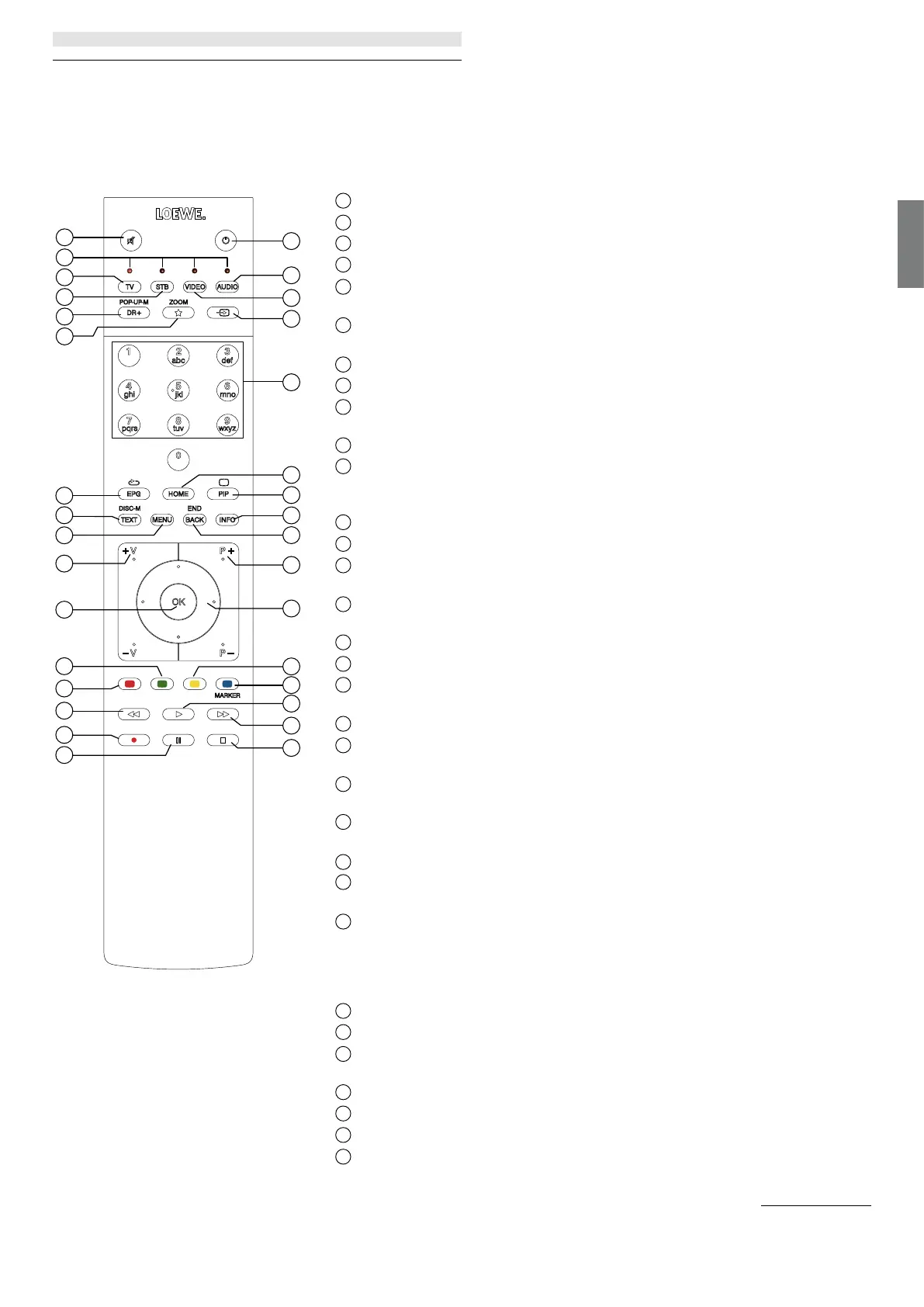 Depending on the application (TV / video / audio / photo / apps) and function (for example, DR +, EPG, PIP, Teletext, HbbTV etc.), the key assignment