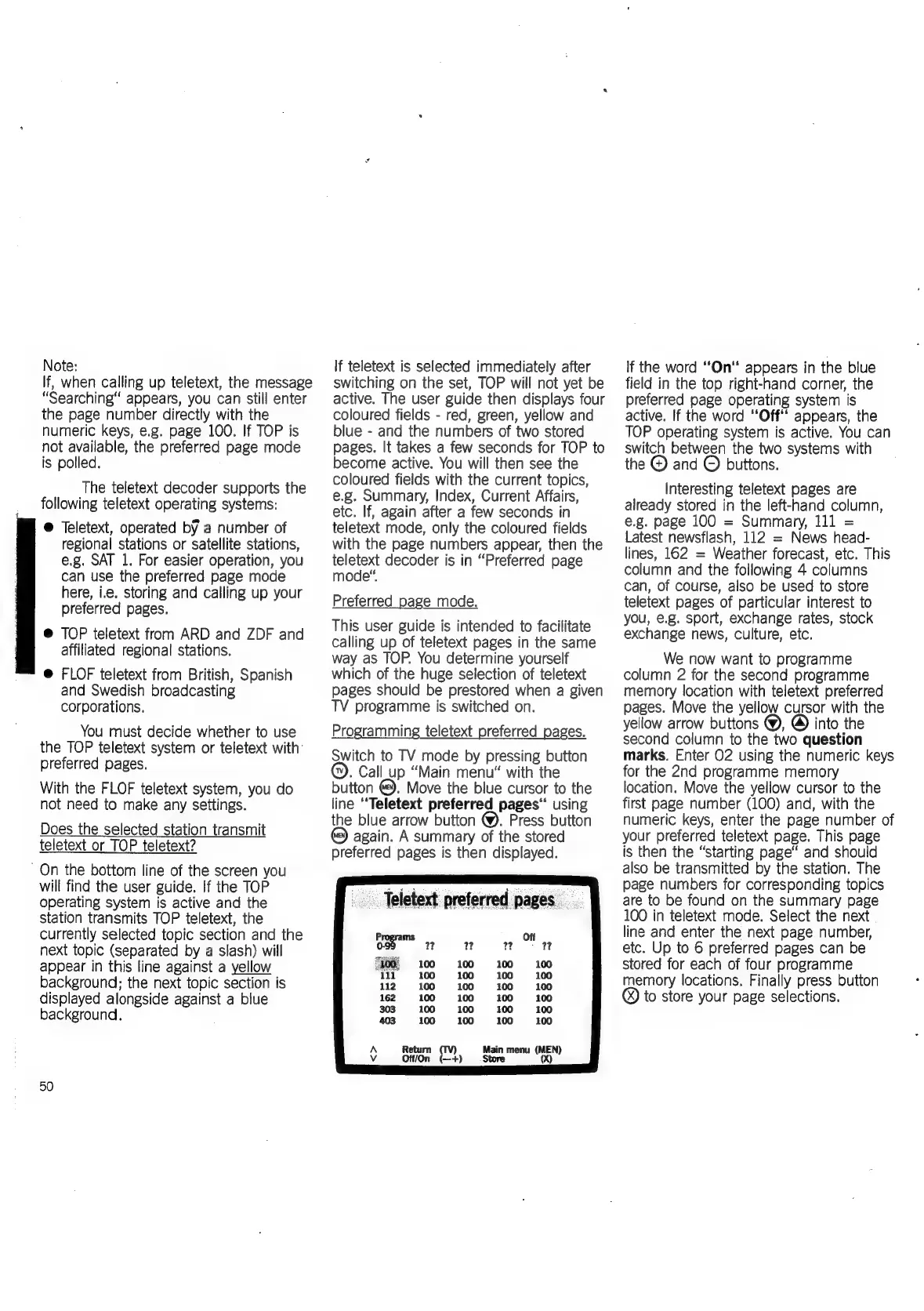 Loewe Concept 1700 - Teletext Preferred Pages; Programming Teletext Pages
