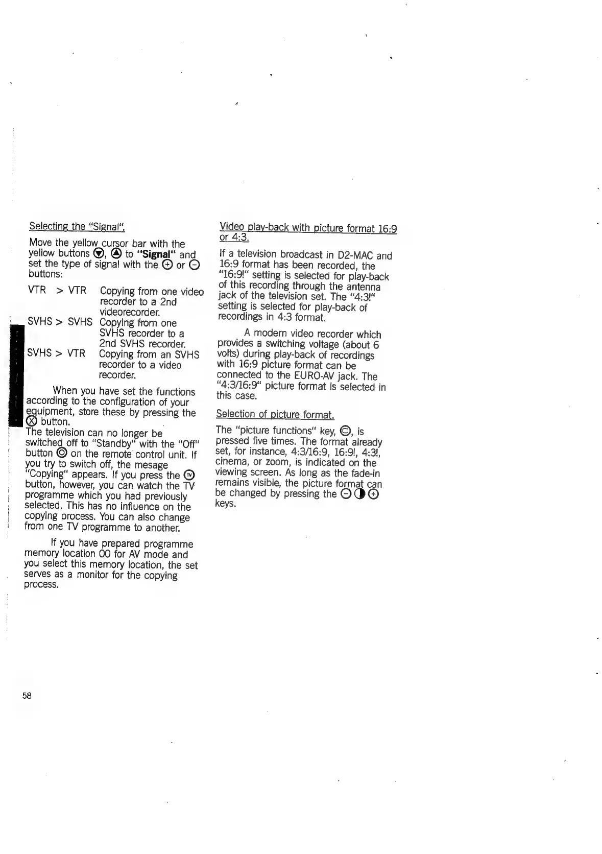 Loewe Concept 1700 - Signal Type Selection; Video Playback Picture Format; Picture Format Adjustment