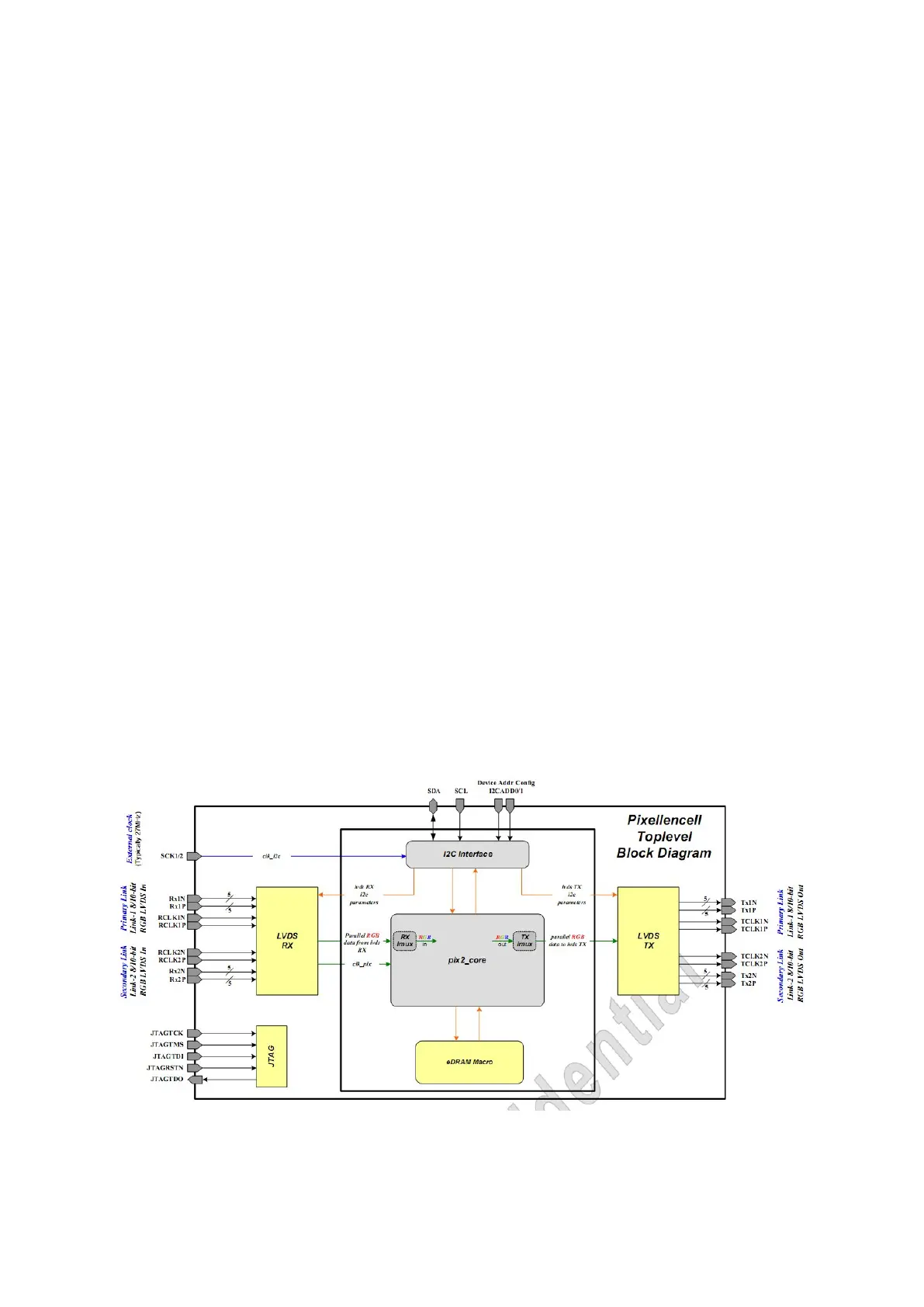 pix2_top module are PixellenceII Core video enhancement engine, I2C Slave interface and