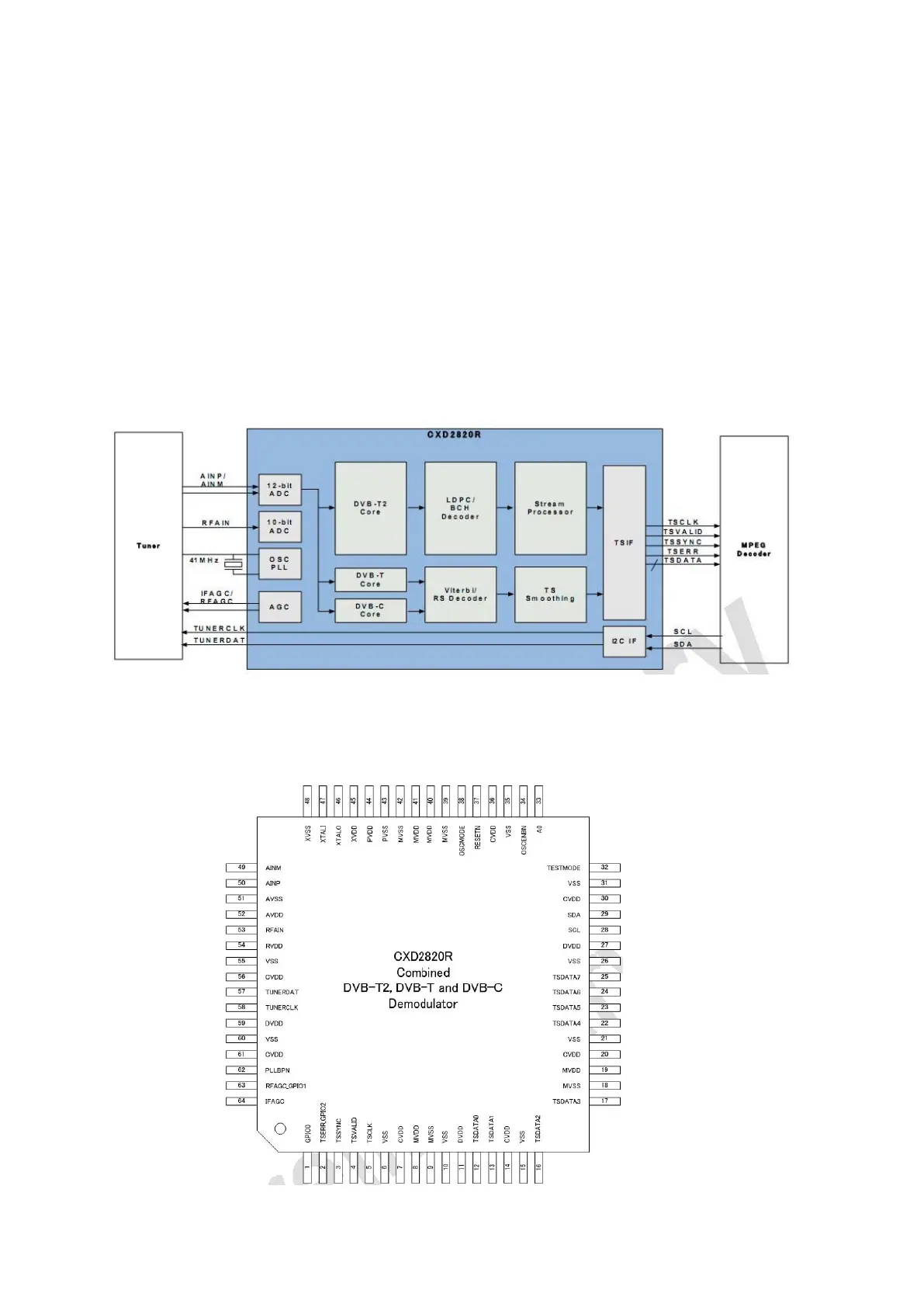 The Sony CXD2820R is a combined DVB-T2, DVB-T and DVB-C demodulator that conforms to