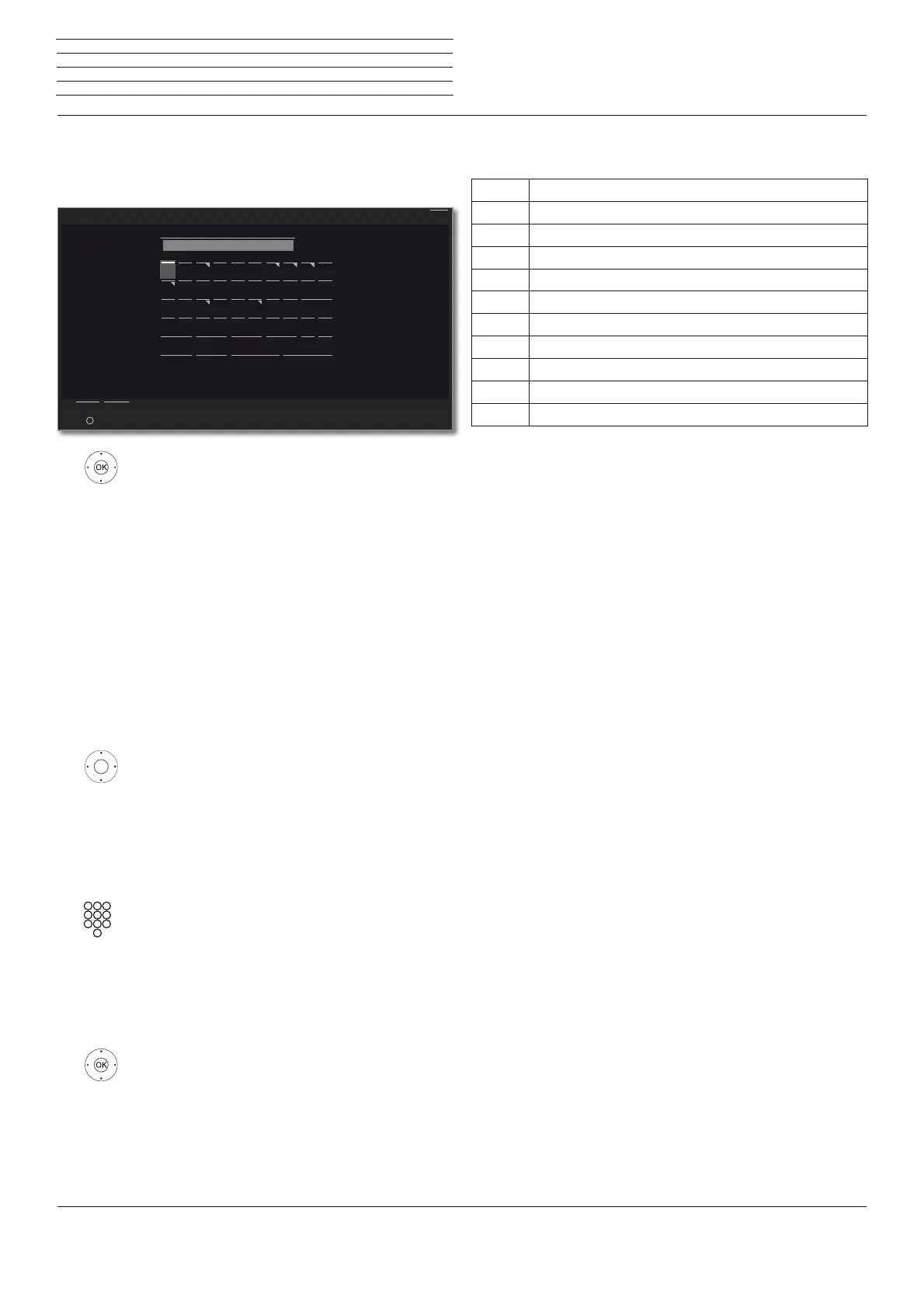 Table of characters for entering text by means of the remote