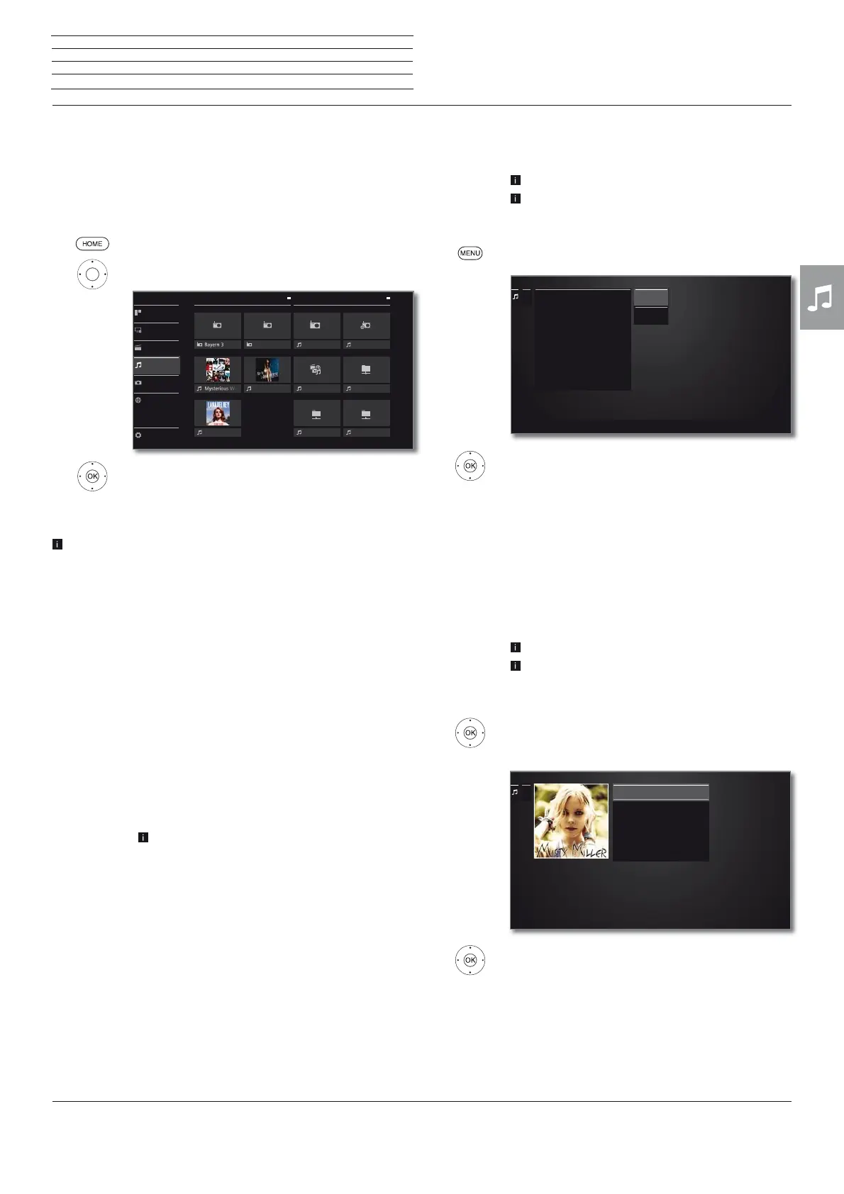 OK Start or continue playback of the selected
