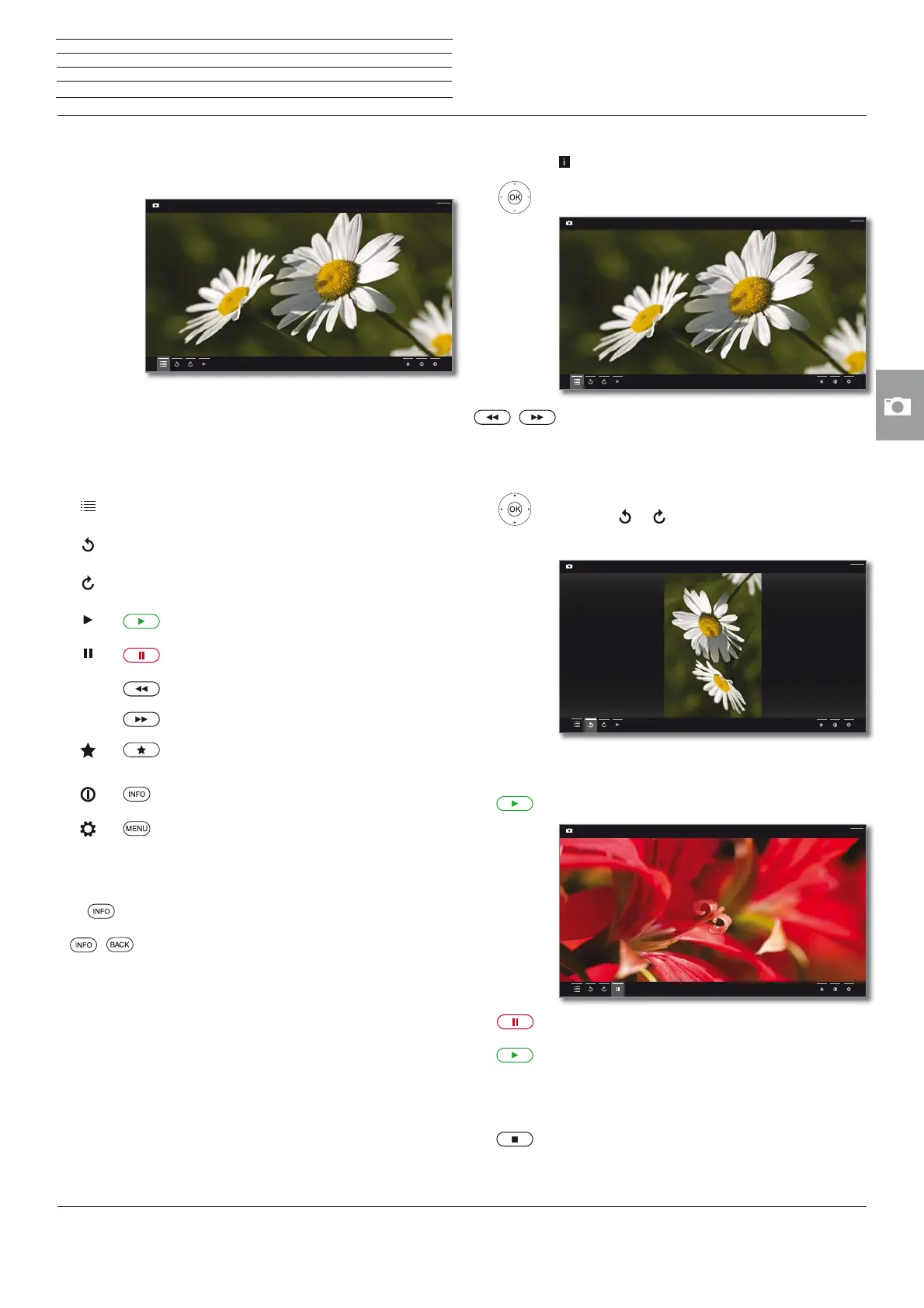 Description of the symbols in the status display for photos