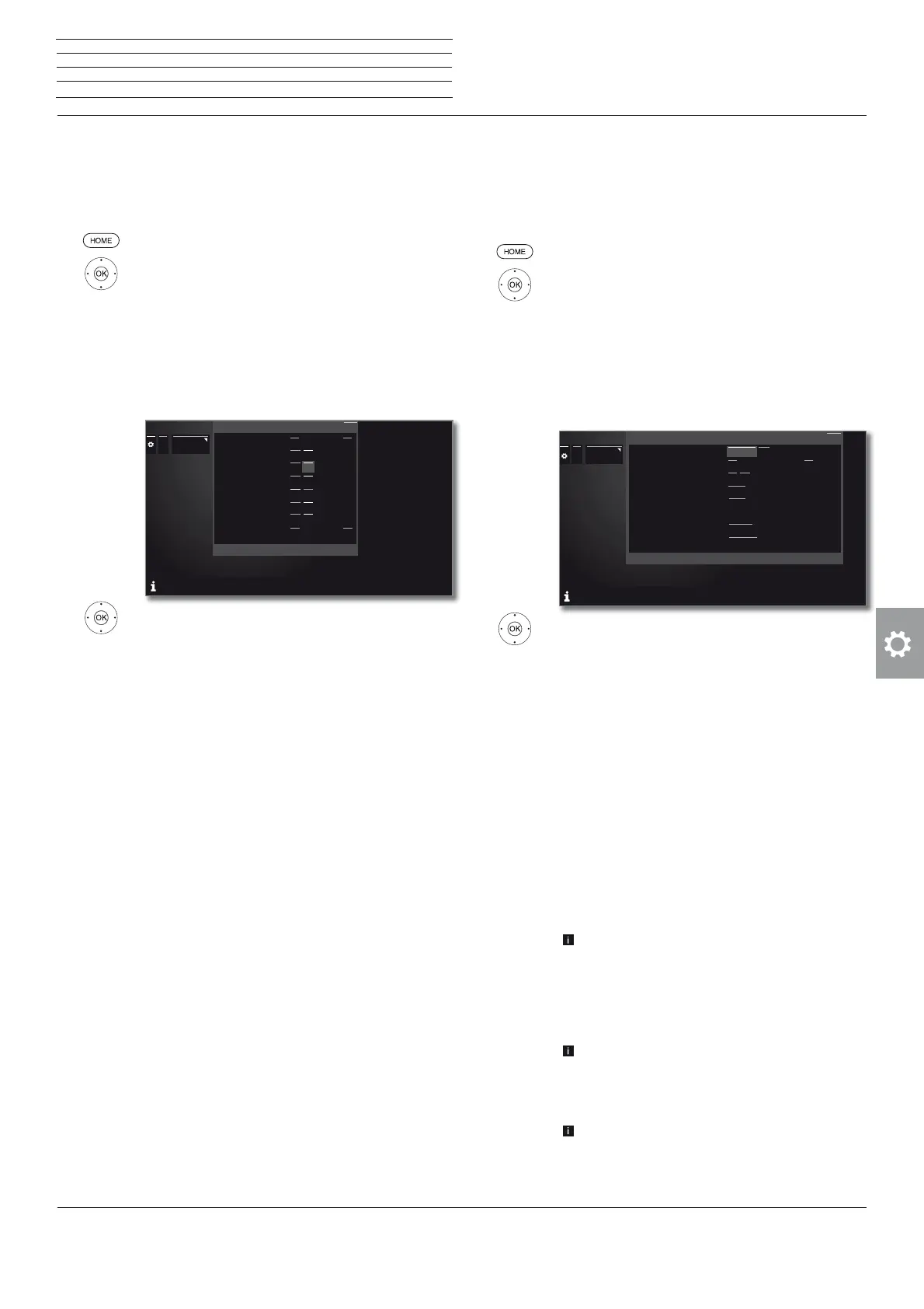 Explanations of setting possibilities in the Time and date menu: