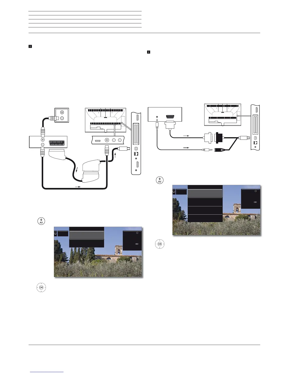 Connect the Scart output of the DVD player to the TV set’s AV socket