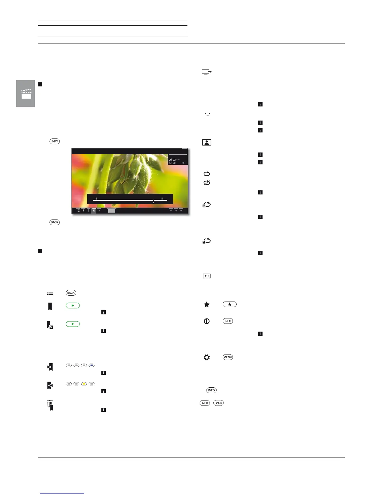 Description of the symbols in the status display for video playback