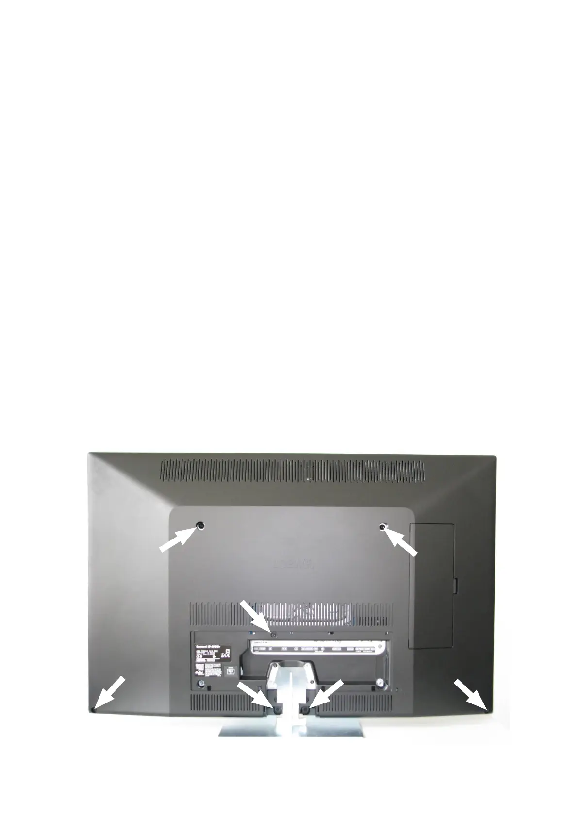Lösen und entfernen Sie, entsprechend des TV-Gerätemodels, die auf der entsprechenden Skizze mit Pfeilen