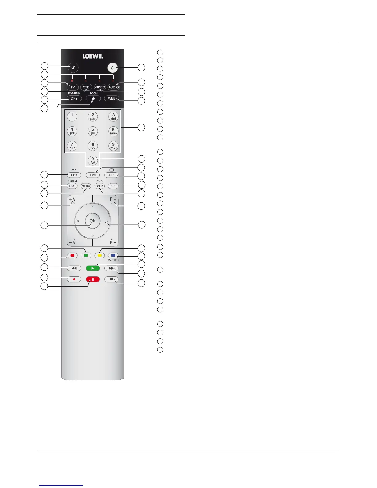 The assignment of these keys can be changed (see chapter External devices, section Operating Loewe units).