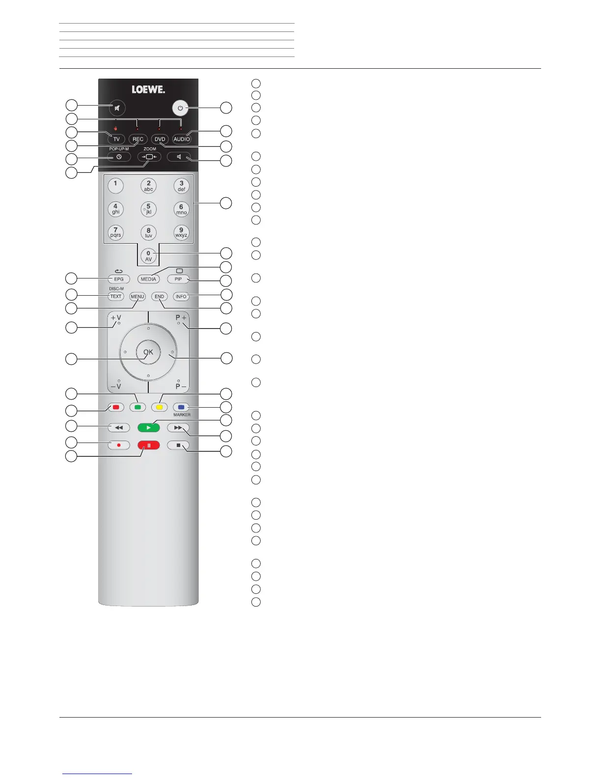 The key assignment displayed here is valid for the main menu level of the TV set. The key assignment may vary in certain operating modes (see the corresponding
