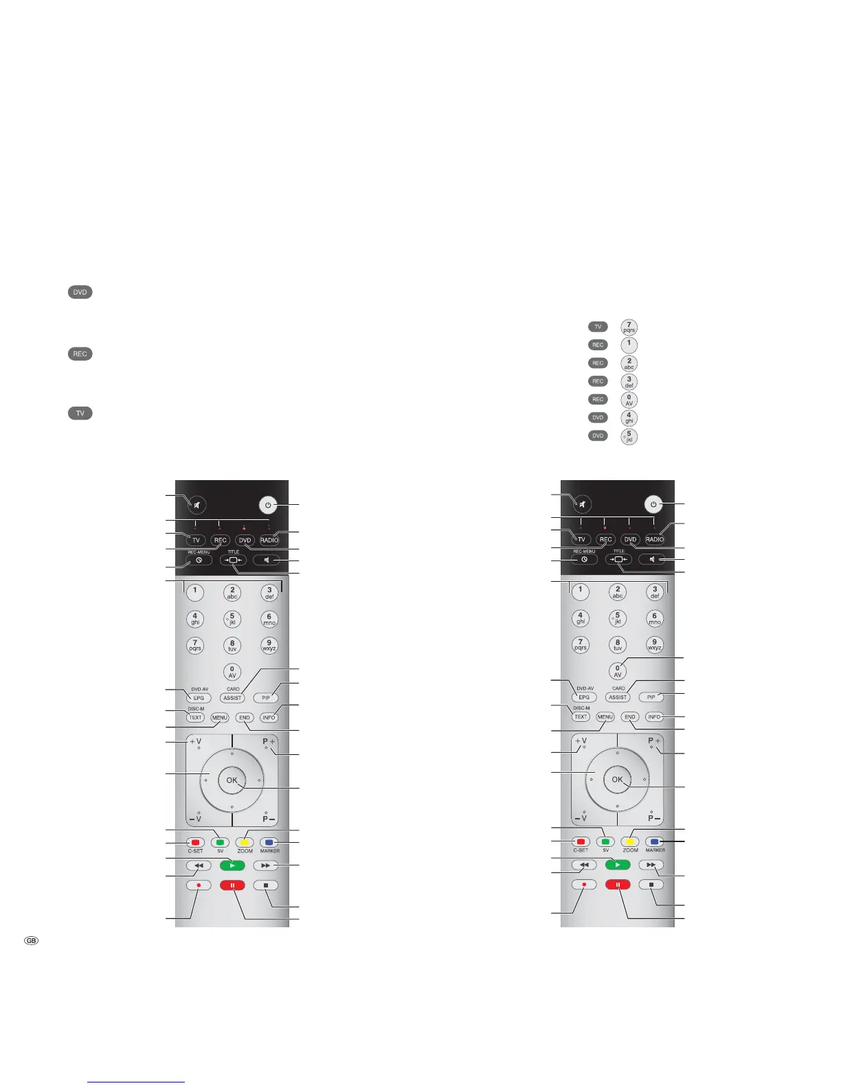 Every time you press the button, the mode indicator (TV – REC – DVD – RADIO)