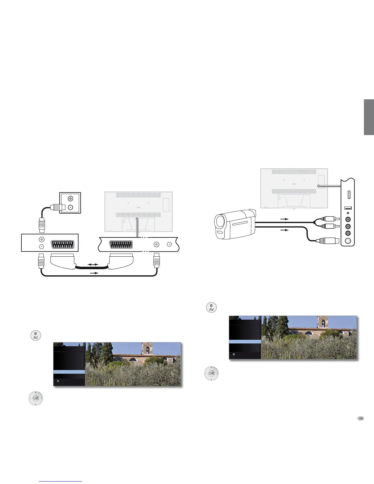 Connect the Euro-AV output of the DVD recorder to the AV socket of