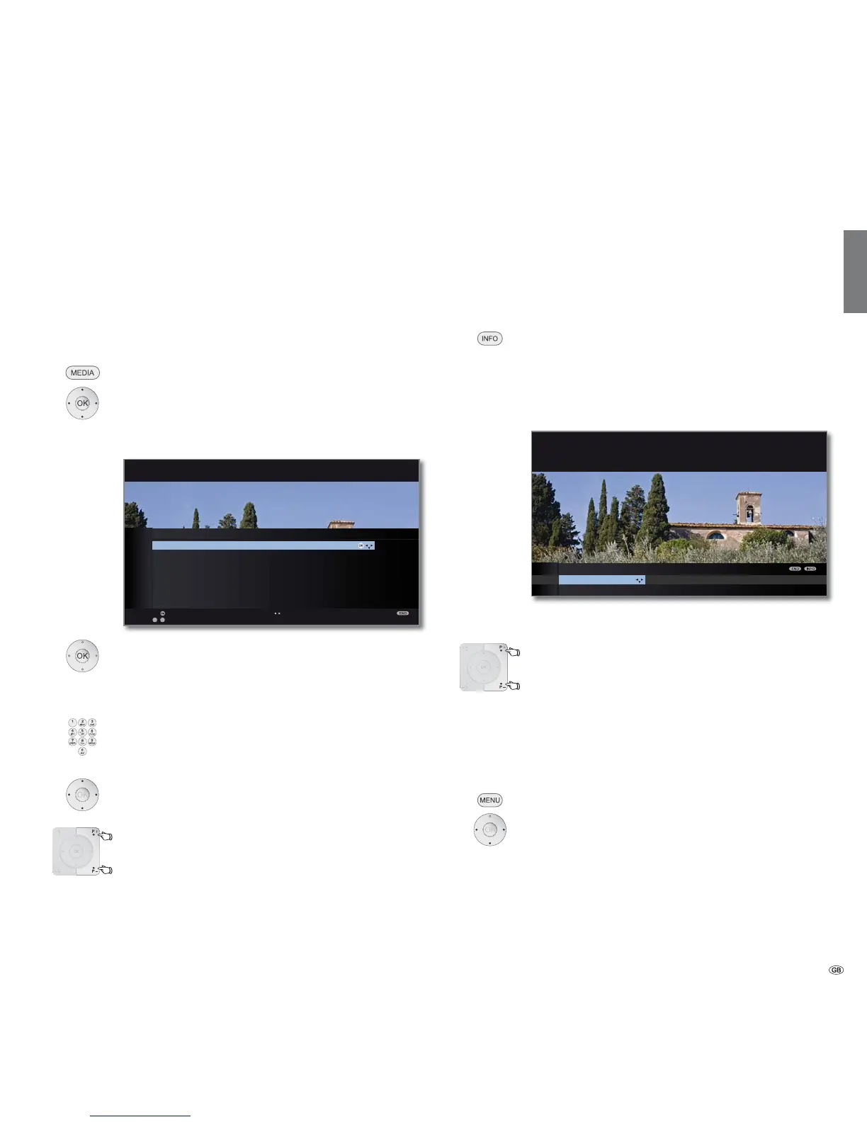 ➠ In normal TV mode, without other displays.