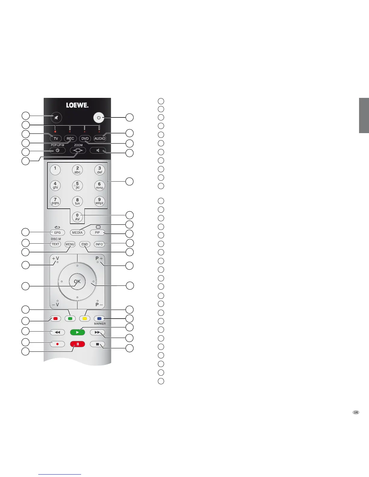 The key assignment displayed here is valid for the main menu level of the TV set. The key assignment