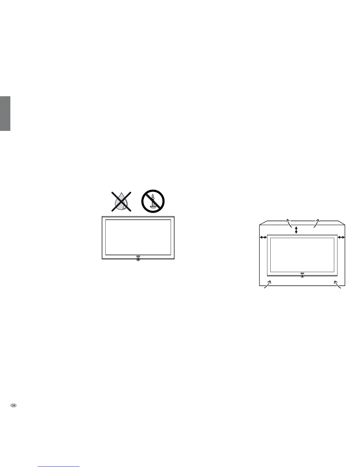 The vent slots on the rear panel of the set must always be kept free.
