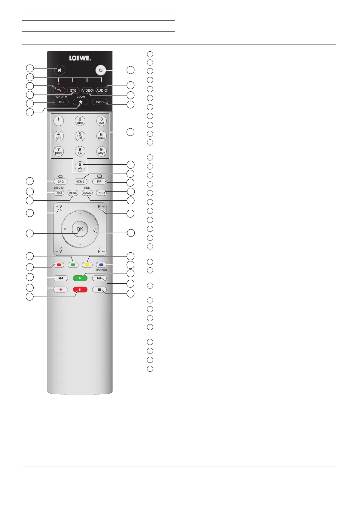 The key assignment displayed here is valid for the main level of the TV set. The key assignment may vary in certain operating modes (see the cor-