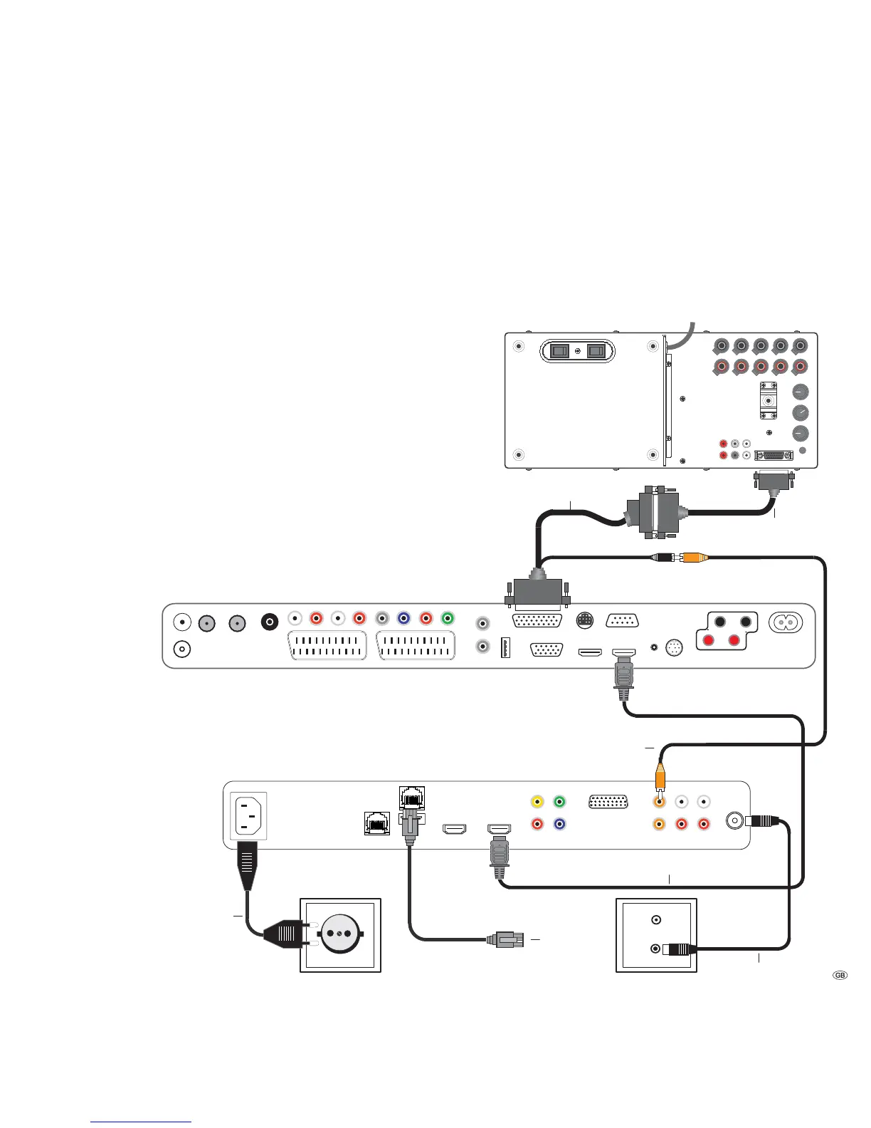 If your TV set does not have an HDMI IN socket, use three video-capable cinch
