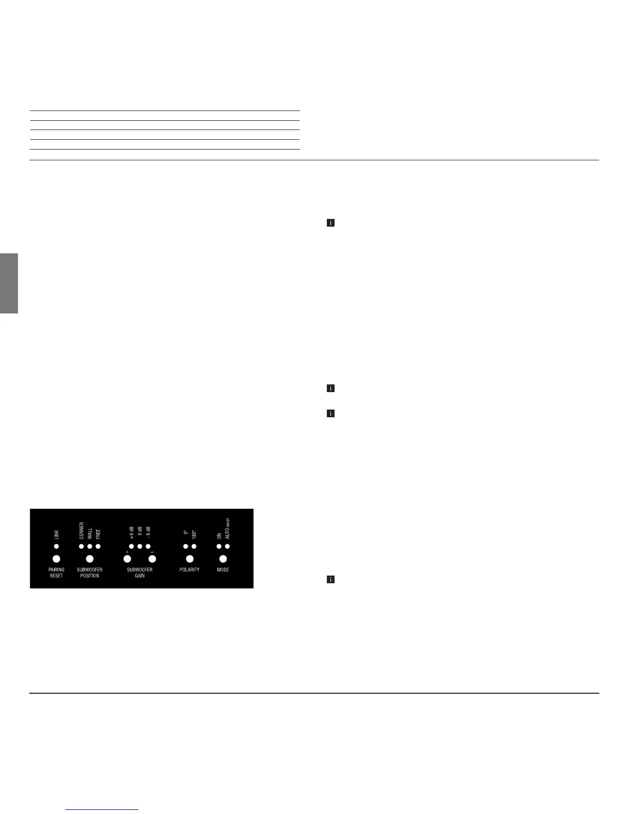 The handling of the settings directly on the subwoofer will depend on the con-
