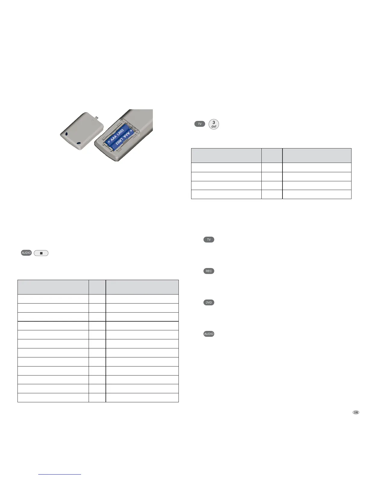 ➠ Do not insert rechargeable batteries in the battery compartment of the remote.