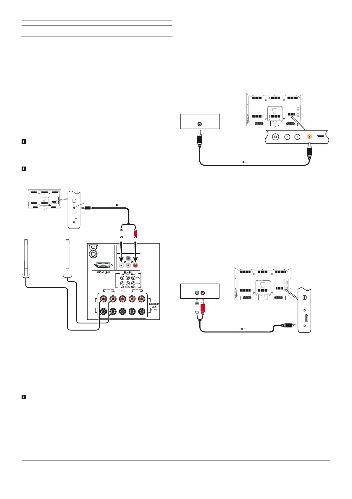 Connect the analogue audio output AUDIO OUT of the TV set with a
