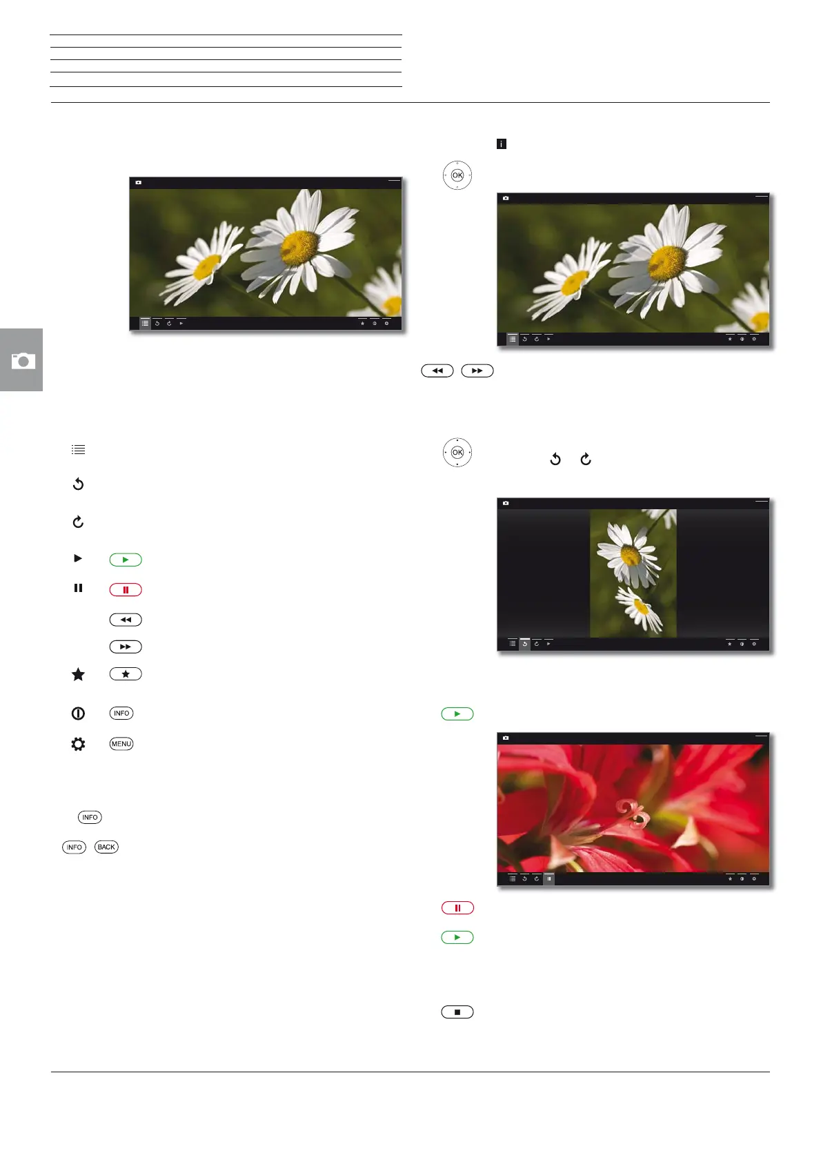 Description of the symbols in the status display for photos