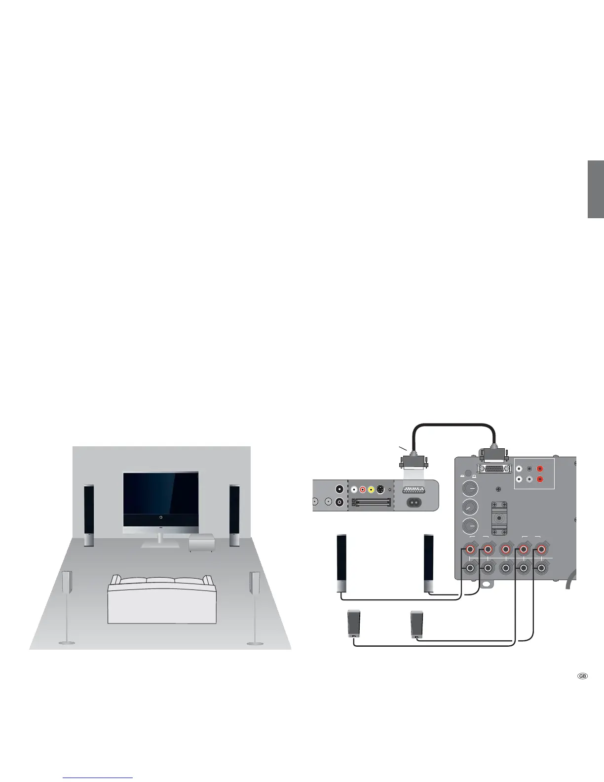 The arrangement of speakers and TV set can look like the illustration