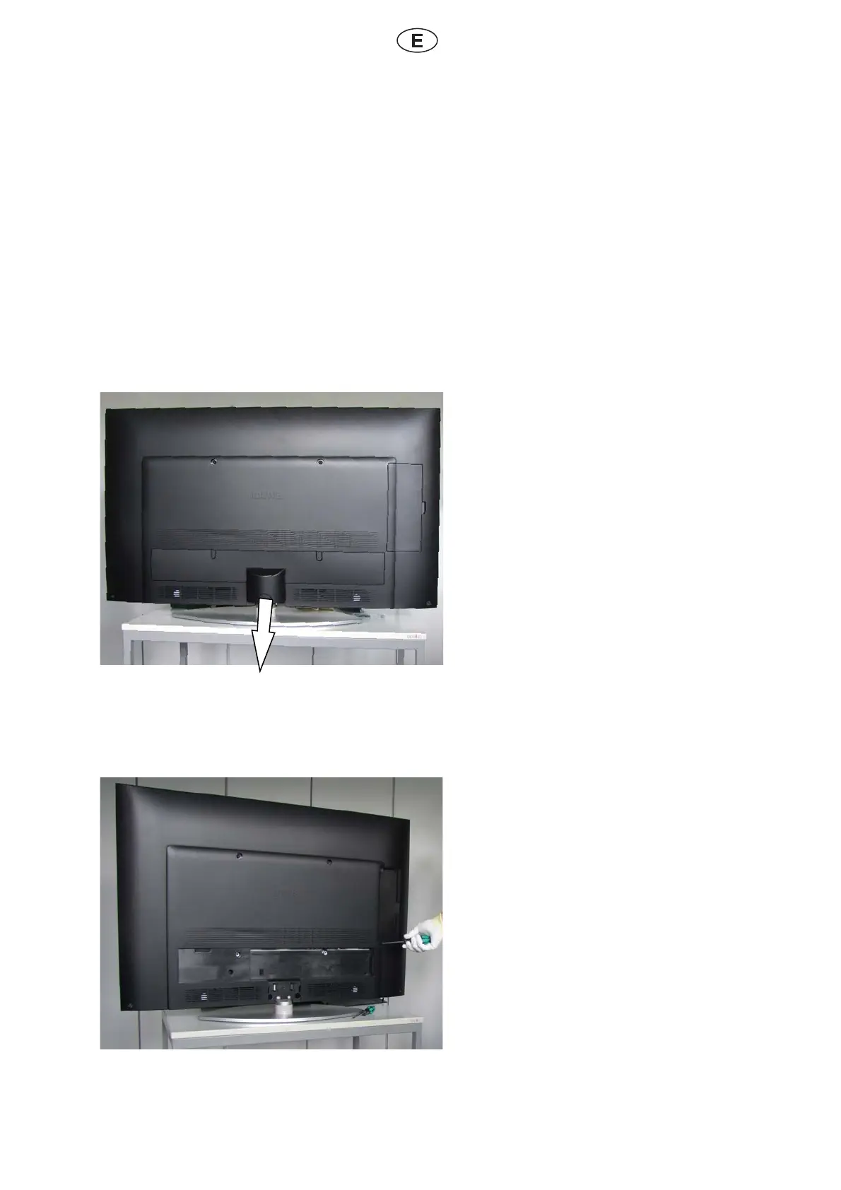 Afl oje y retire, según el modelo de televisor, los tornillos señalados con fl echas en el esquema correspondiente.