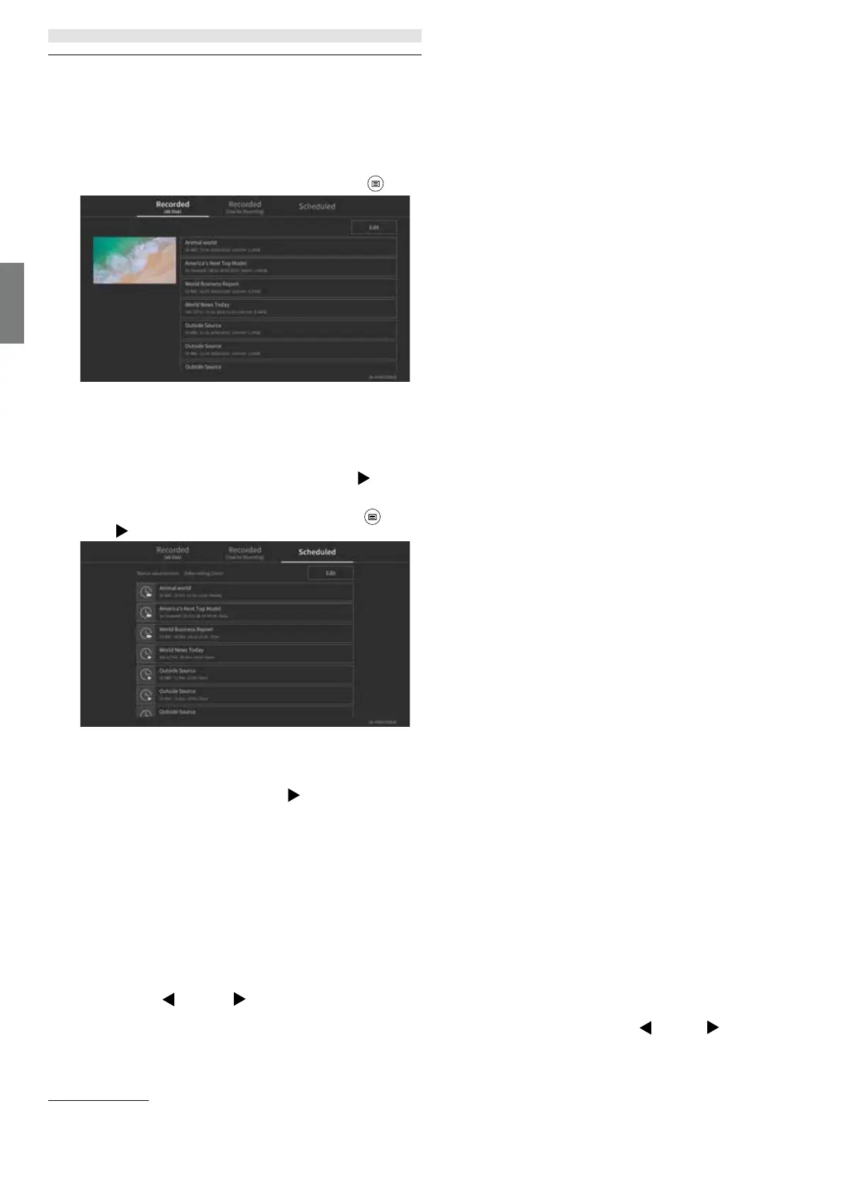 di spunta sul lato destro. Premere il tasto (destra) per eliminare le registrazioni programmate selezionate.
