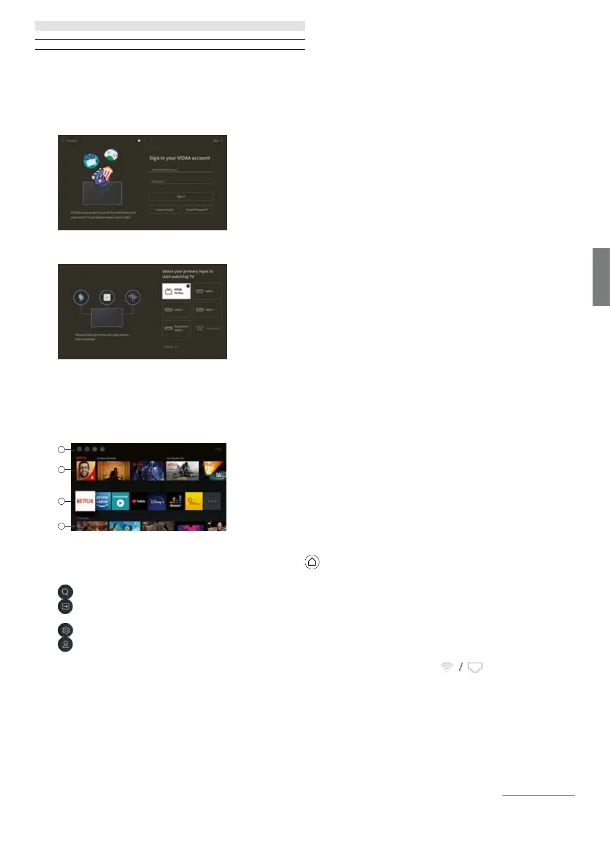 Remarque : Sans compte VIDAA, certaines fonctions du téléviseur ne sont pas disponibles ou sont limitées.
