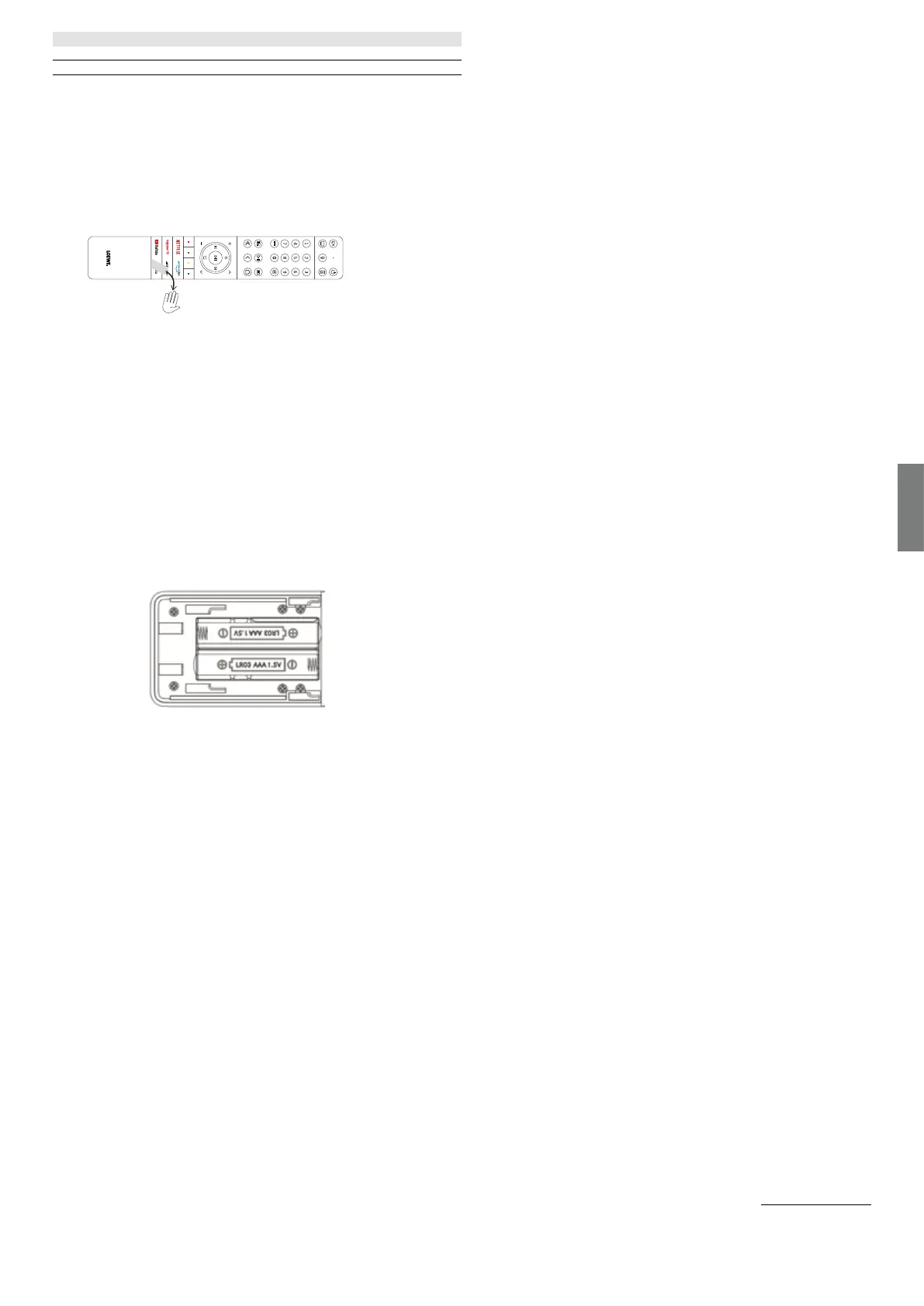 El mando a distancia se suministra con pilas. Para utilizarlas, retire la tira de plástico tal y como se muestra en la ilustración.