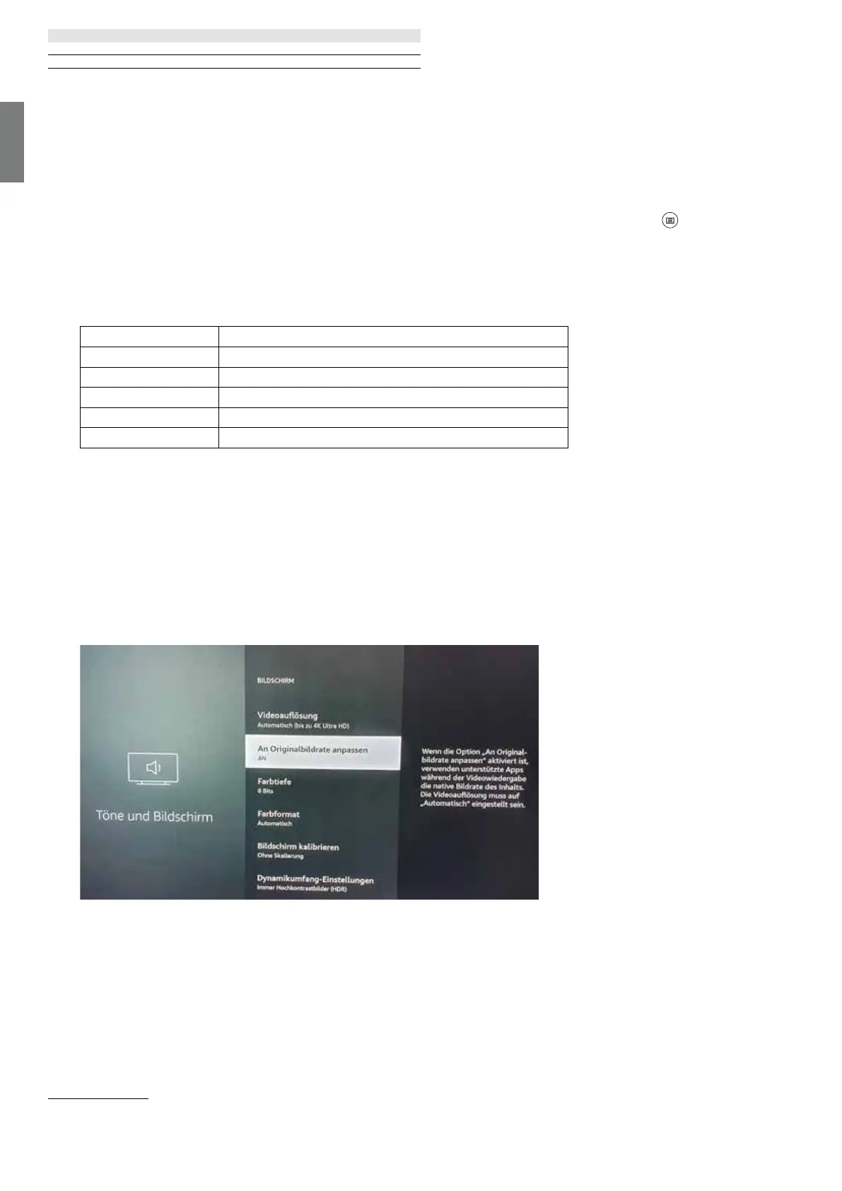 Hinweis: Bild zeigt Menü eines externen 4k Zuspielers (exemplarisch)