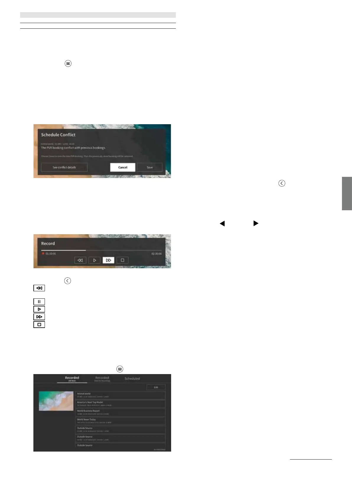 parcialmente con otra grabación programada guardada. En este caso, aparecerá una pantalla de información. Como el televisor solo puede