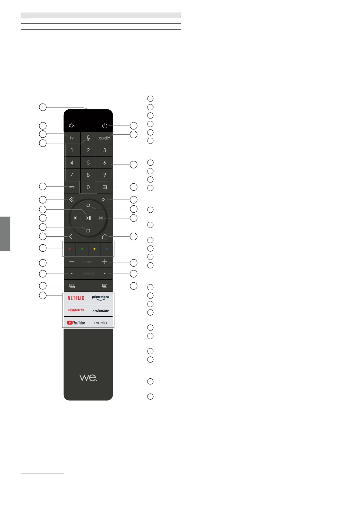 Schakelt de tv in of schakelt deze naar de stand-bymodus� Kort indrukken terwijl de