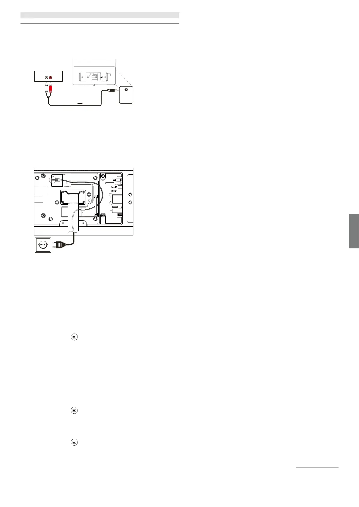 Gebruik een stereo cinch-connector/adapterkabel om de audio-uitgang AUDIO OUT TOSLINK aan te sluiten op de analoge audio-ingang van het
