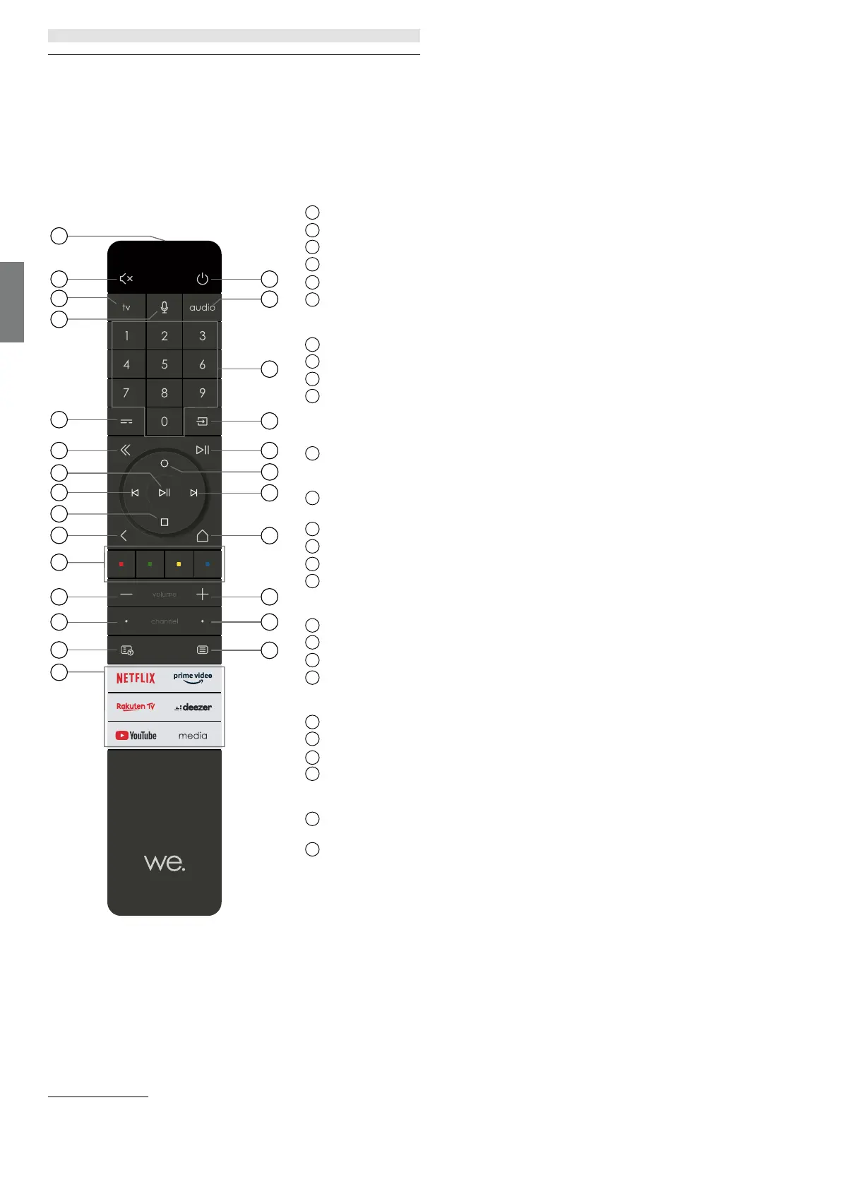 Se premuto a lungo: avvia il processo di associazione bluetooth, rendendo la TV visibile agli altri disposi-