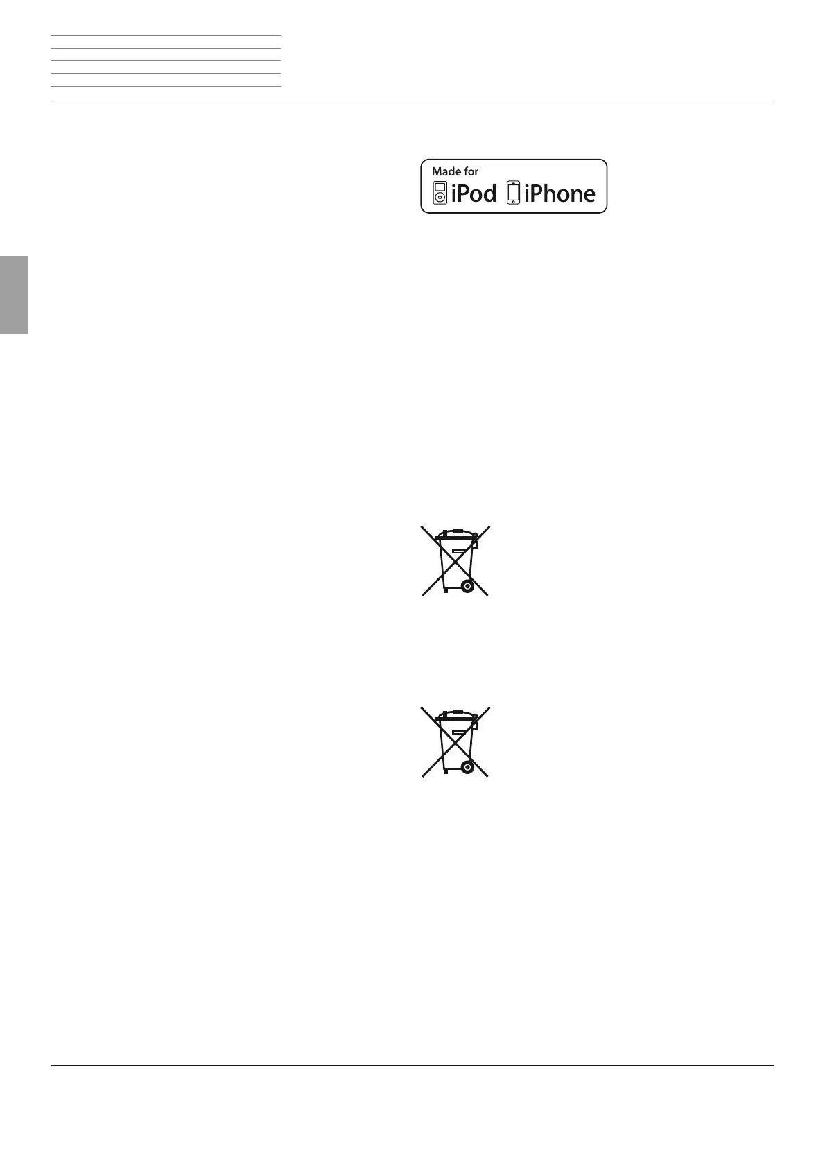 “Made for iPod” and “Made for iPhone” mean that an electronic ac-