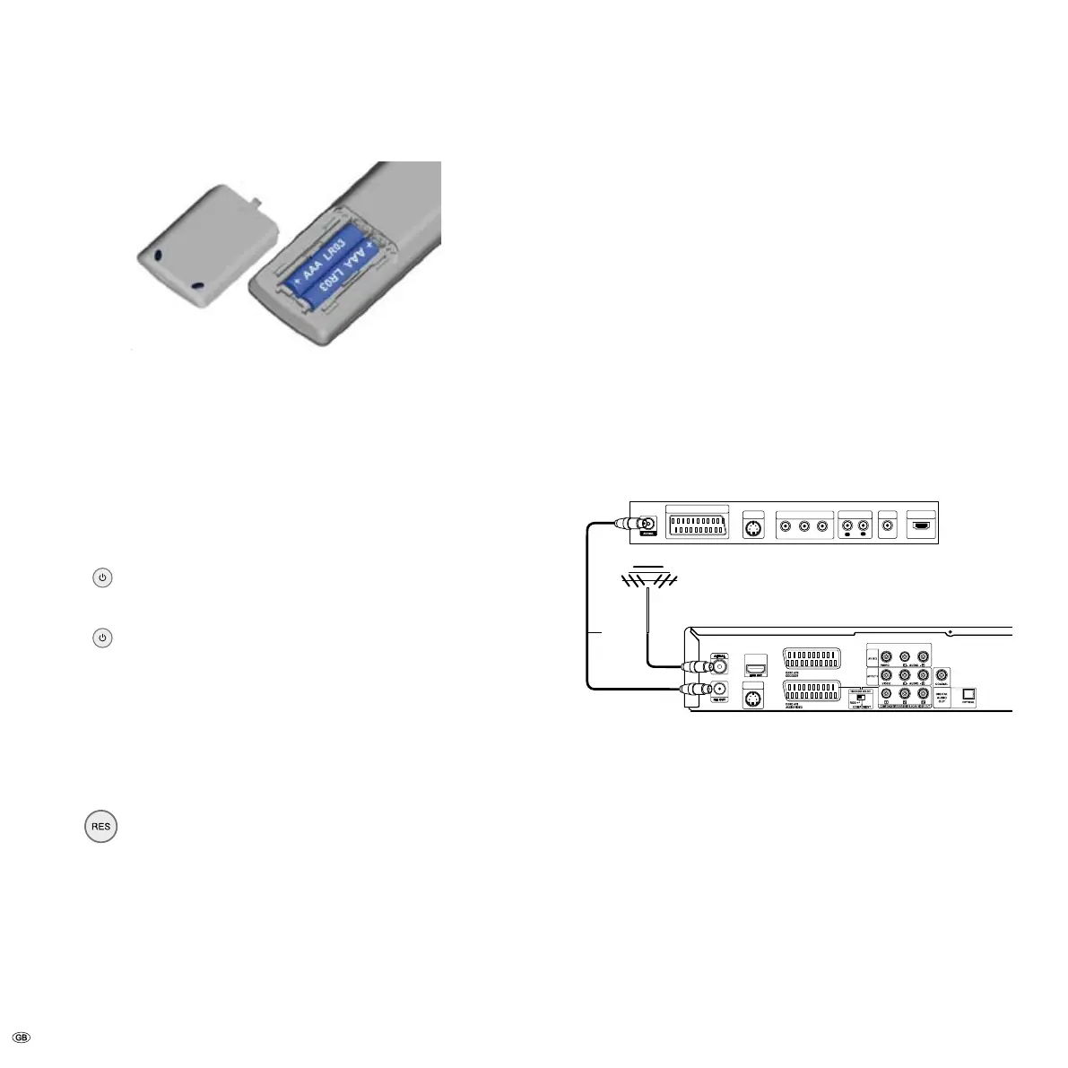 recorder (RF-OUT) and the other end into the aerial socket on the TV.