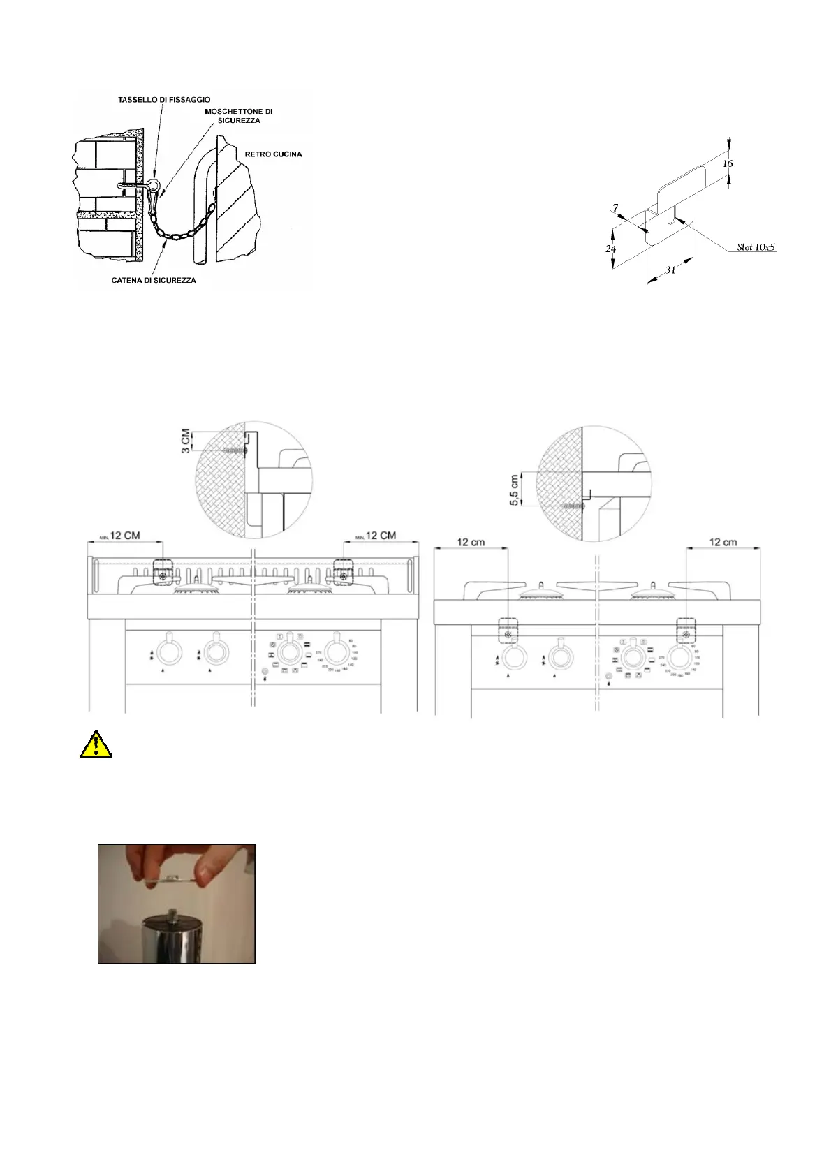 Per l'installazione ancorare il fornello utilizzando il kit fornito