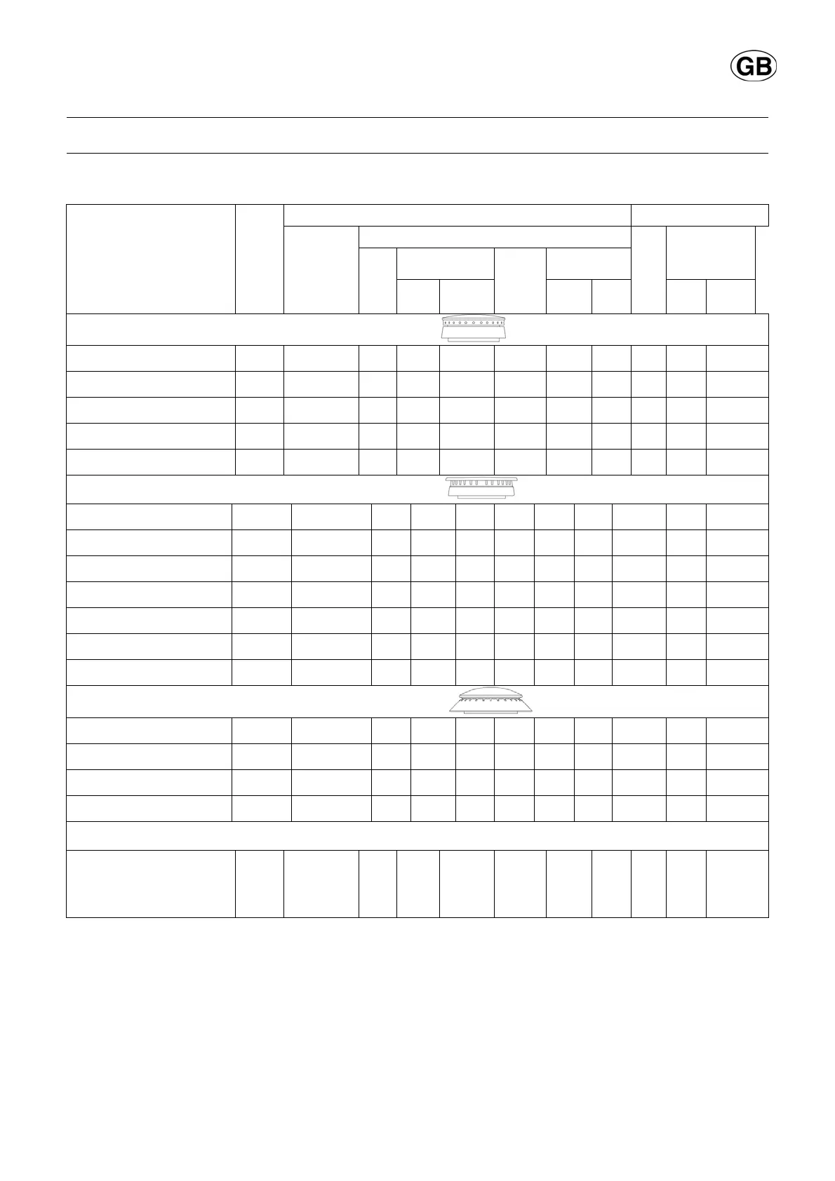 BURNER SPECIFICATIONS TABLE 1