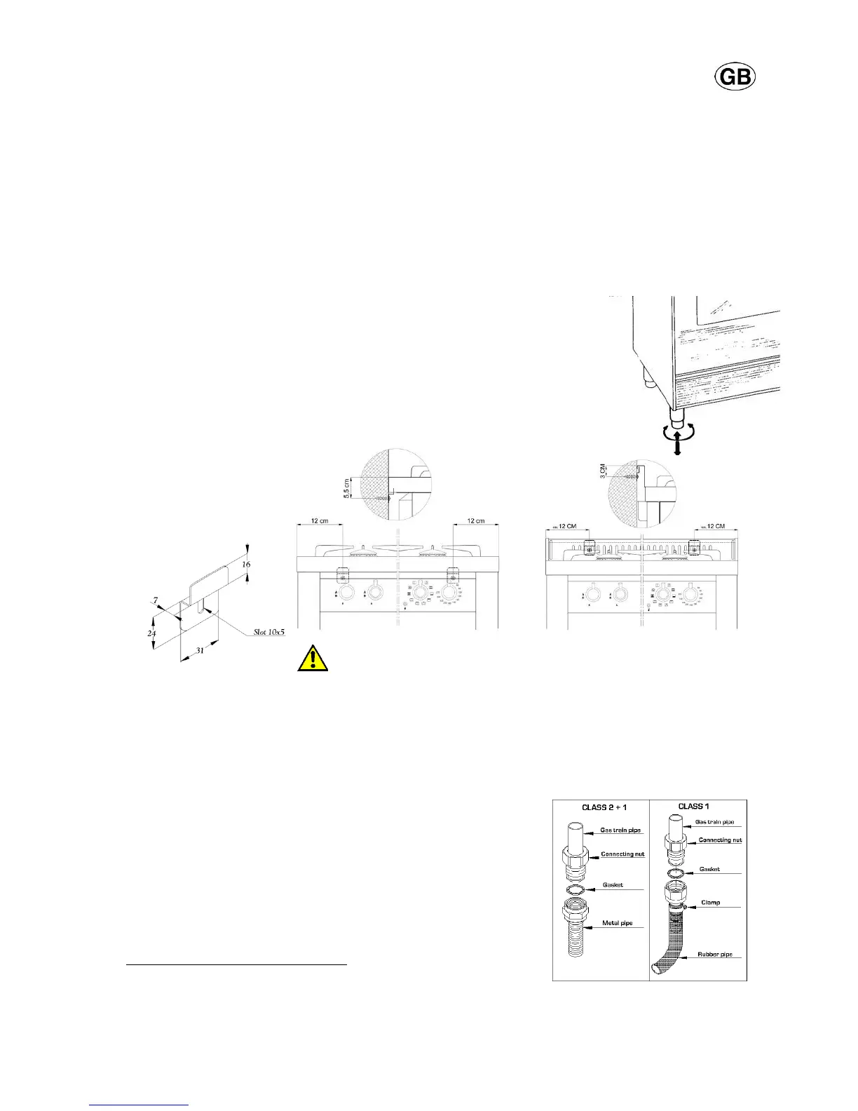 b) Class 1 (Free-standing cooker): Class 2 instructions also
