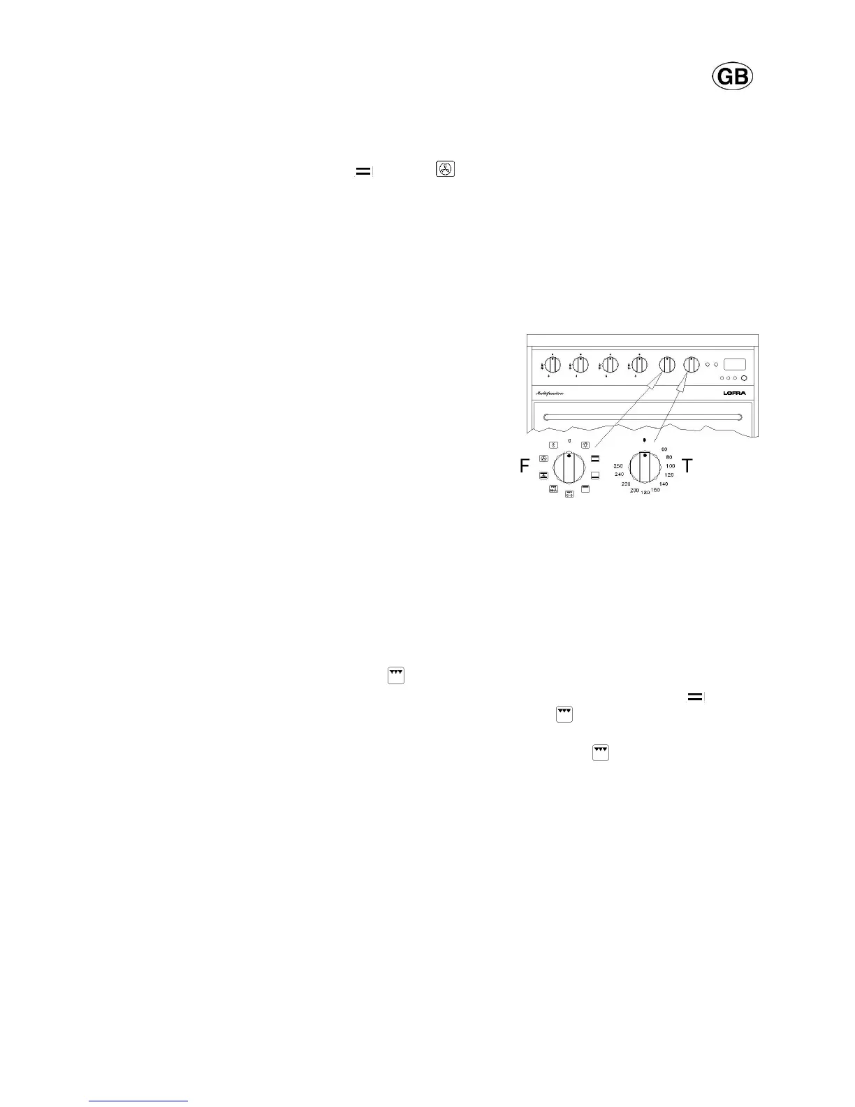 required grill position. Then turn the oven thermostat knob (T) and set temperature to