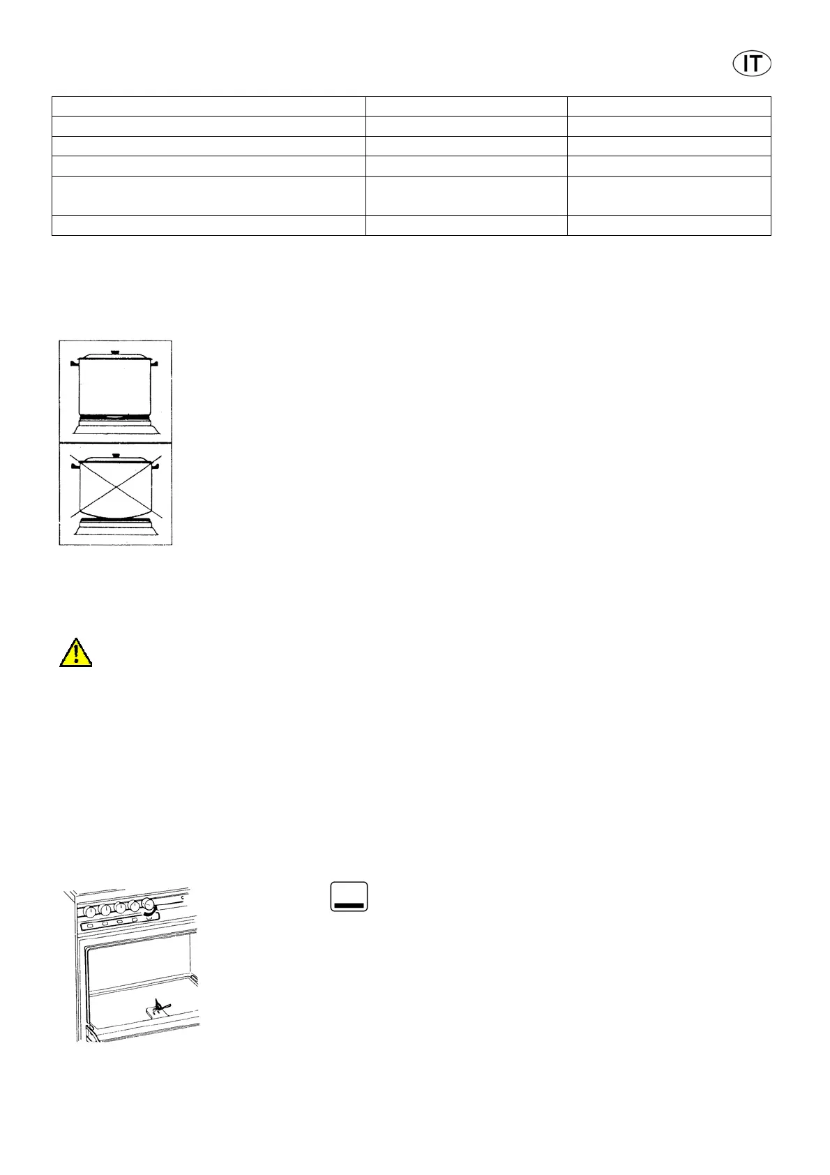 N.B. A seconda della conformazione del piano tenere una distanza fra i bordi delle pentole di