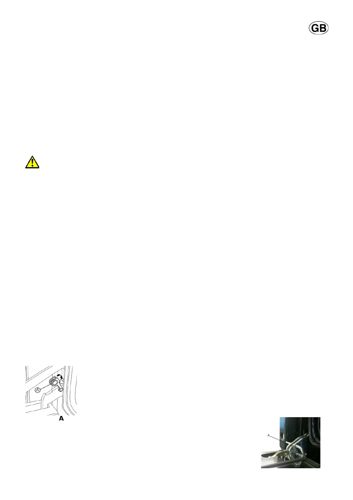 Open the oven door completely, insert the anti-rotation device (A) in the