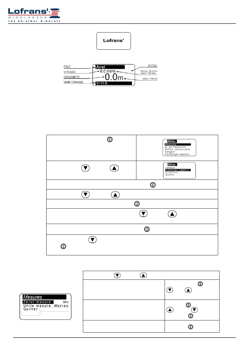 DÉCOMPTE: indique la longueur de la chaîne descendue (mètres ou pieds).
