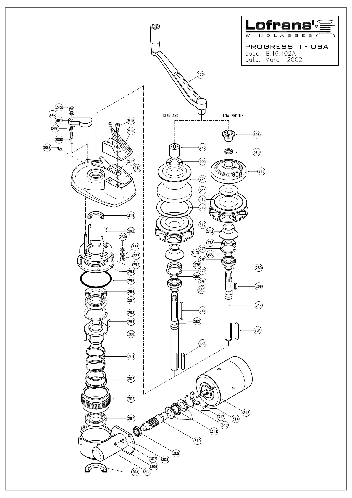 Lofrans PROGRESS ONE - Exploded Diagram; Windlass Component Assembly Diagram